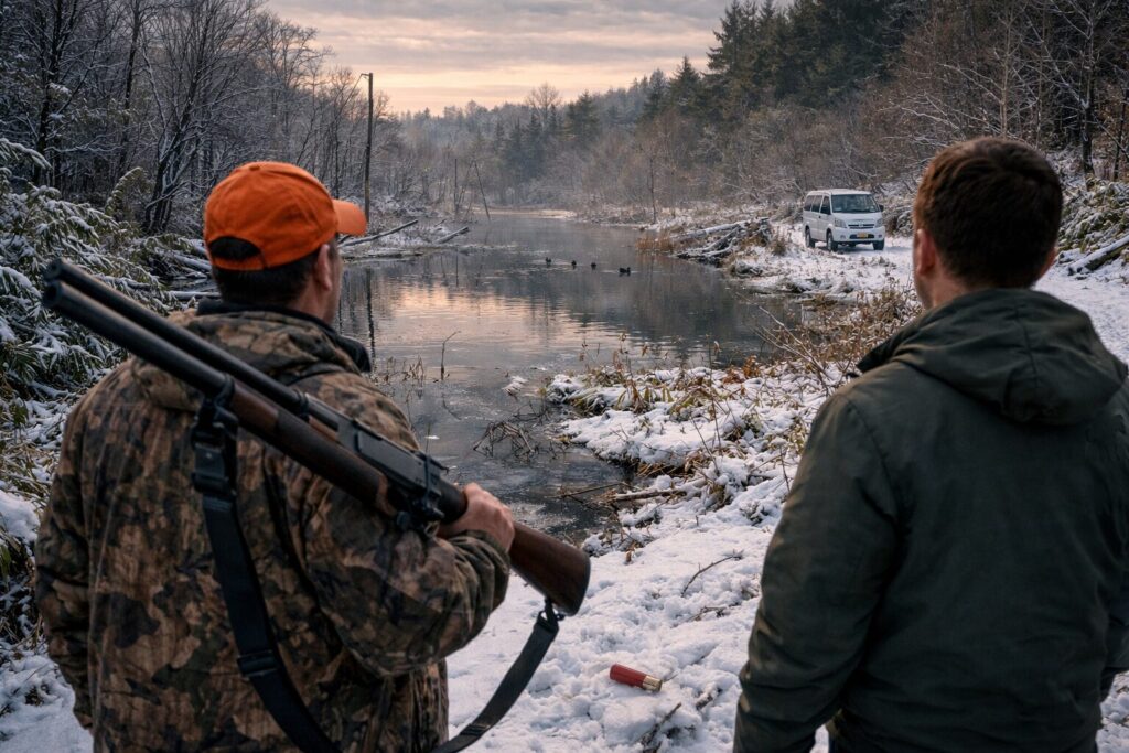 友人と歩いた冬の鴨池、静かな狩猟体験