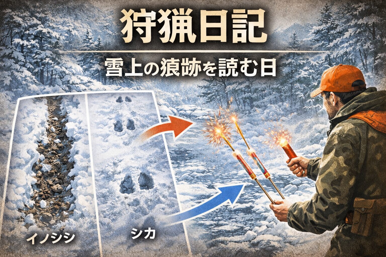積雪期の山は、動物たちの行動がそのまま白いキャンバスに刻まれる。今日は特に、イノシシとニホンジカの痕跡の違いについて学びがあった。